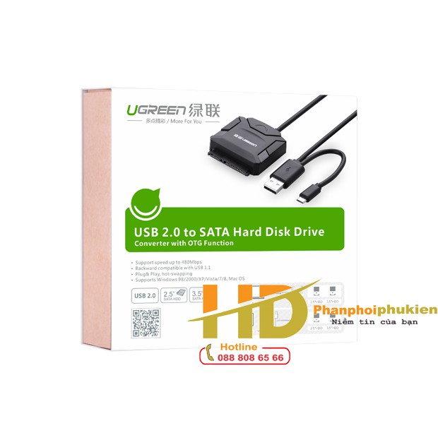 Máy tính & Laptop > Thiết Bị Lưu Trữ > USB & OTG || [Mã 253ELSALE hoàn 7% đơn 300K] Cáp Converter USB 2.0 to SATA cho ổ cứng HDD 2,5 và 3,5 Ugreen 20215Còn hàng
