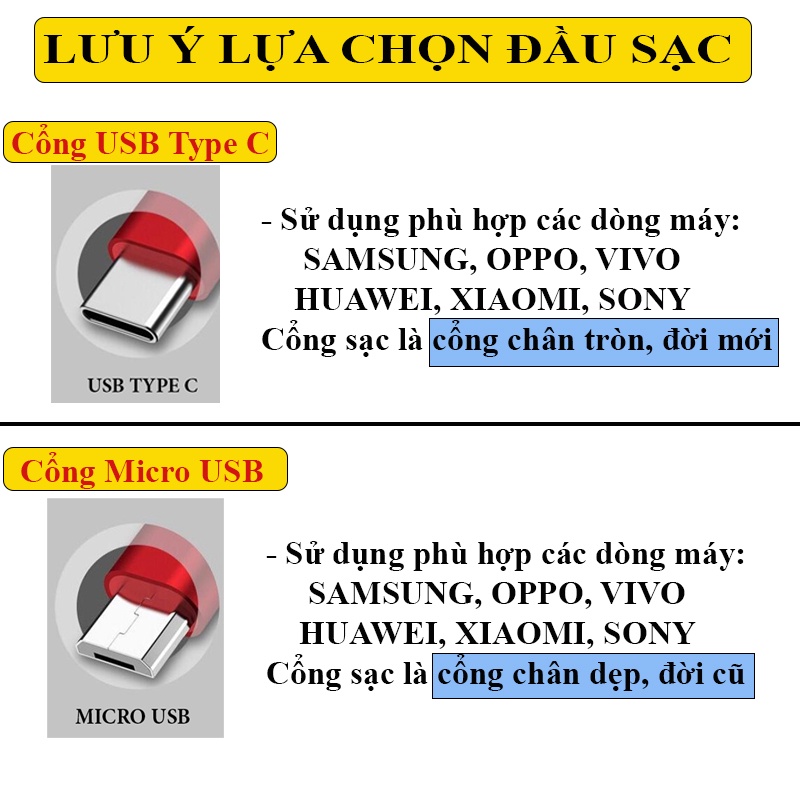 - CHÂN TYPE C (SAMSUNG, OPPO, VIVO, XIAOMI, HUAWEI ĐỜI MỚI) - Chân tròn (xem kĩ ở mục ảnh)