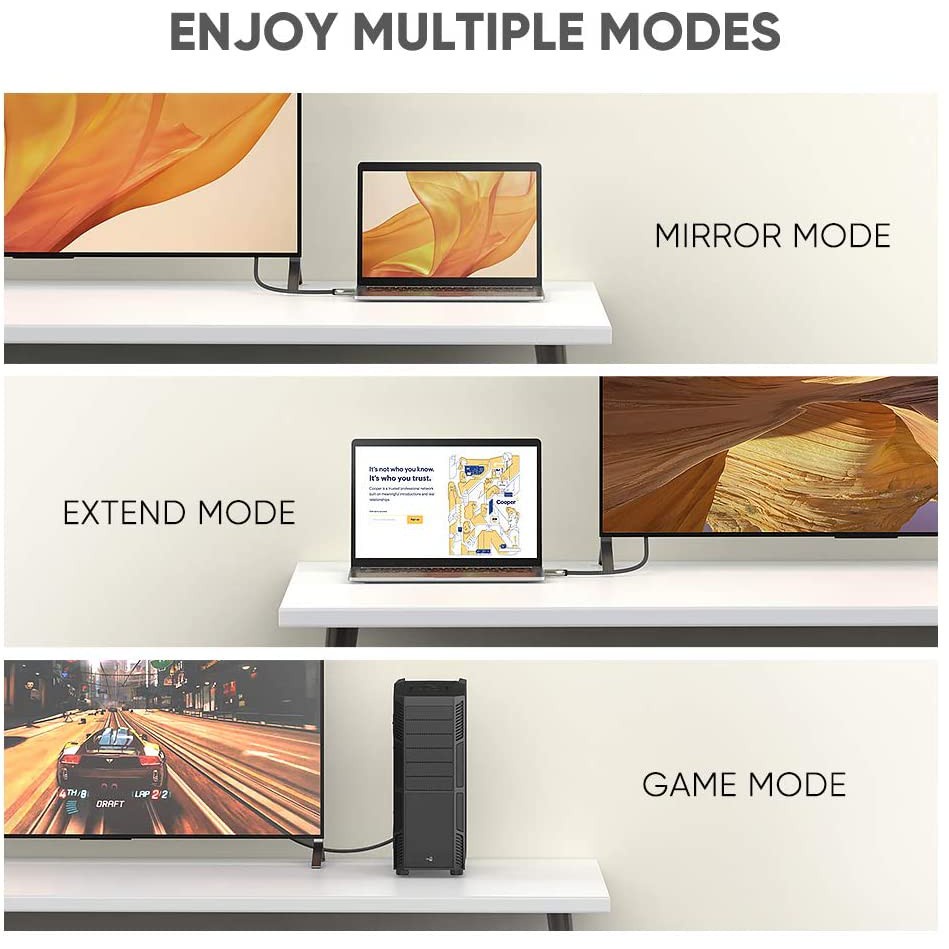 Chuyên dụng để truyền đồng thời hình ảnh và âm thanh độ phân giải cao từ bất kỳ các thiết bị phát có trang bị cổng Displayport sang các thiết bị trình chiếu như HDTV, màn hình hoặc máy chiếu với tốc độ truyền tải hình ảnh băng thông rộng lên đến 32,4Gbps