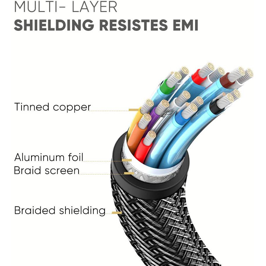 Lớp vỏ bện nilon SPCC bền và dày, đầu jack cắm hợp kim với chốt khóa chắc chắn tăng độ bền cho sợi cáp