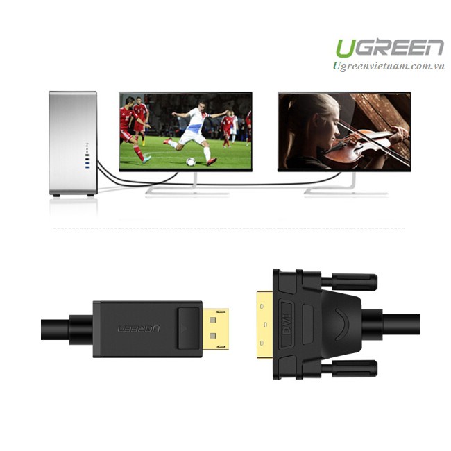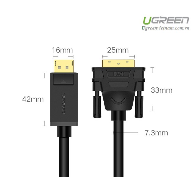 - Cáp Displayport to DVI 24+1 dài 2m chính hãng Ugreen 10221 cho phép bạn dễ dàng kết nối một màn hình DVI hoặc máy chiếu để một hệ thống hoặc card đồ họa với một kết nối DisplayPort. Nhưng nó không thể được sử dụng để kết nối với một màn hình DisplayPort hoặc máy chiếu để card đồ họa trong đó có một đầu ra DVI.