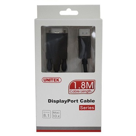 Cáp Displayport -> VGA (K) 1.8m Unitek Y5118F, Cap chuyển thẳng từ Displayport sang VGA dài 1.8m Unitek Y5118F