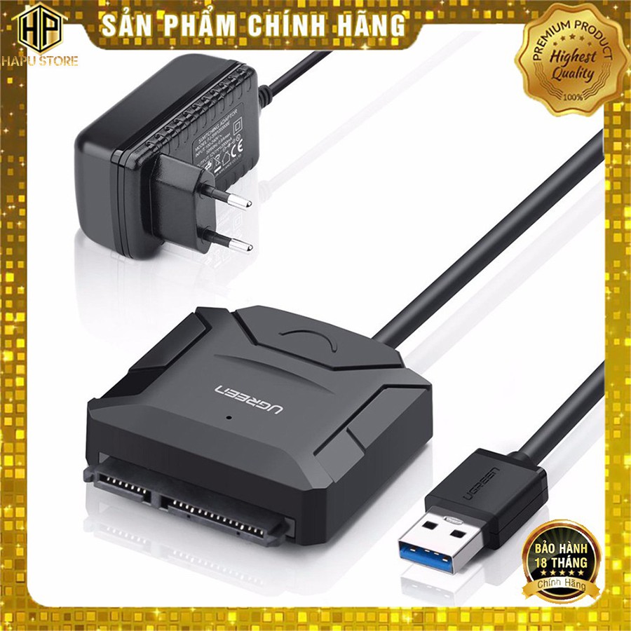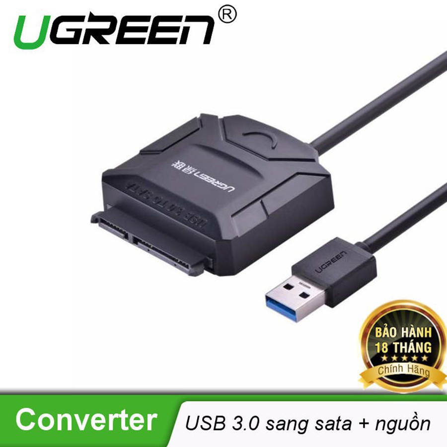 Cáp đọc dữ liệu ổ cứng USB 3.0 sang SATA Ugreen 20611 - 20231 kèm dây nguồn 12V2A dài 50cm - HapuStore