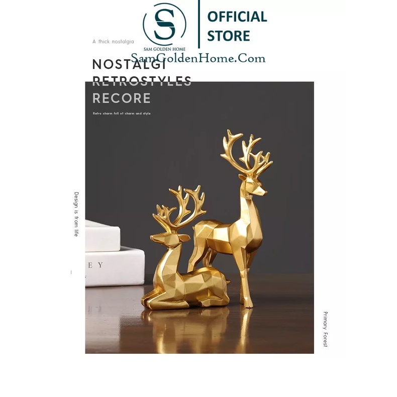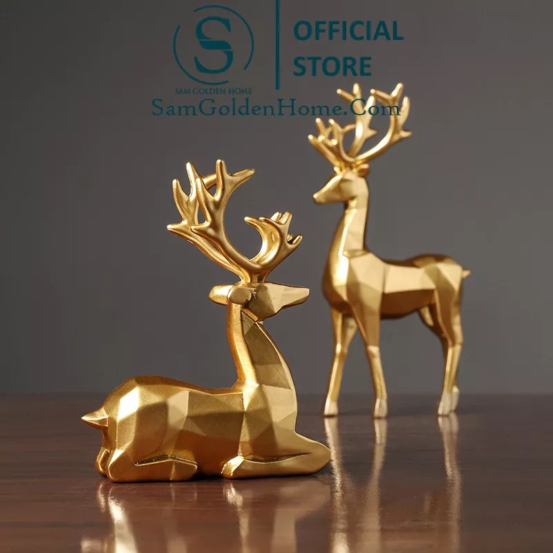 Tượng Cặp Nai Vàng Gold Sang Trọng Phong Cách Bắc Âu