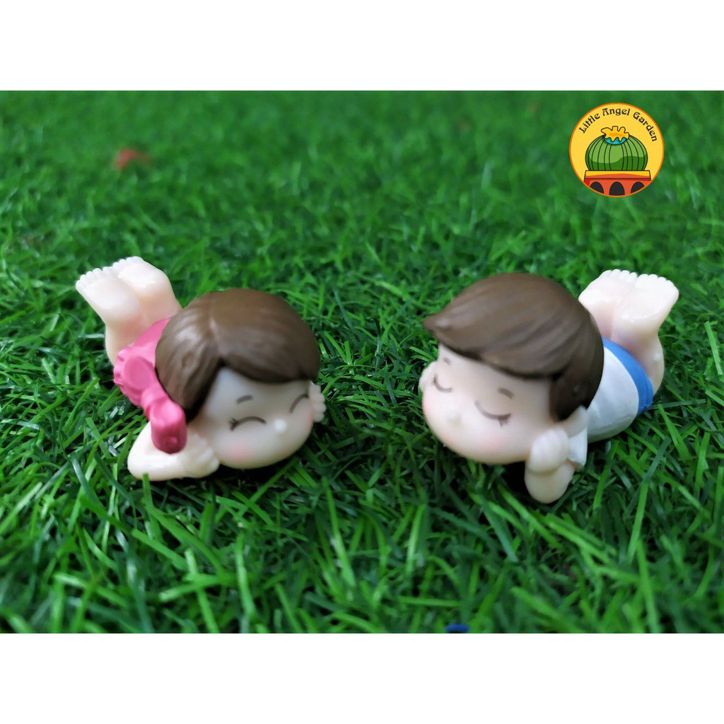 Cặp đôi nằm| Phụ kiện trang trí tiểu cảnh cặp đôi |Gồm Bé trai, bé gái đang nằm