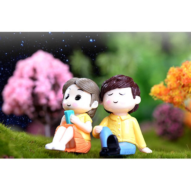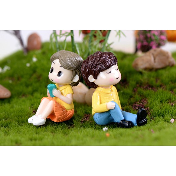 Cặp Đôi Ngồi Bệt Áo Vàng Làm Tiểu Cảnhchất liệu : nhựa