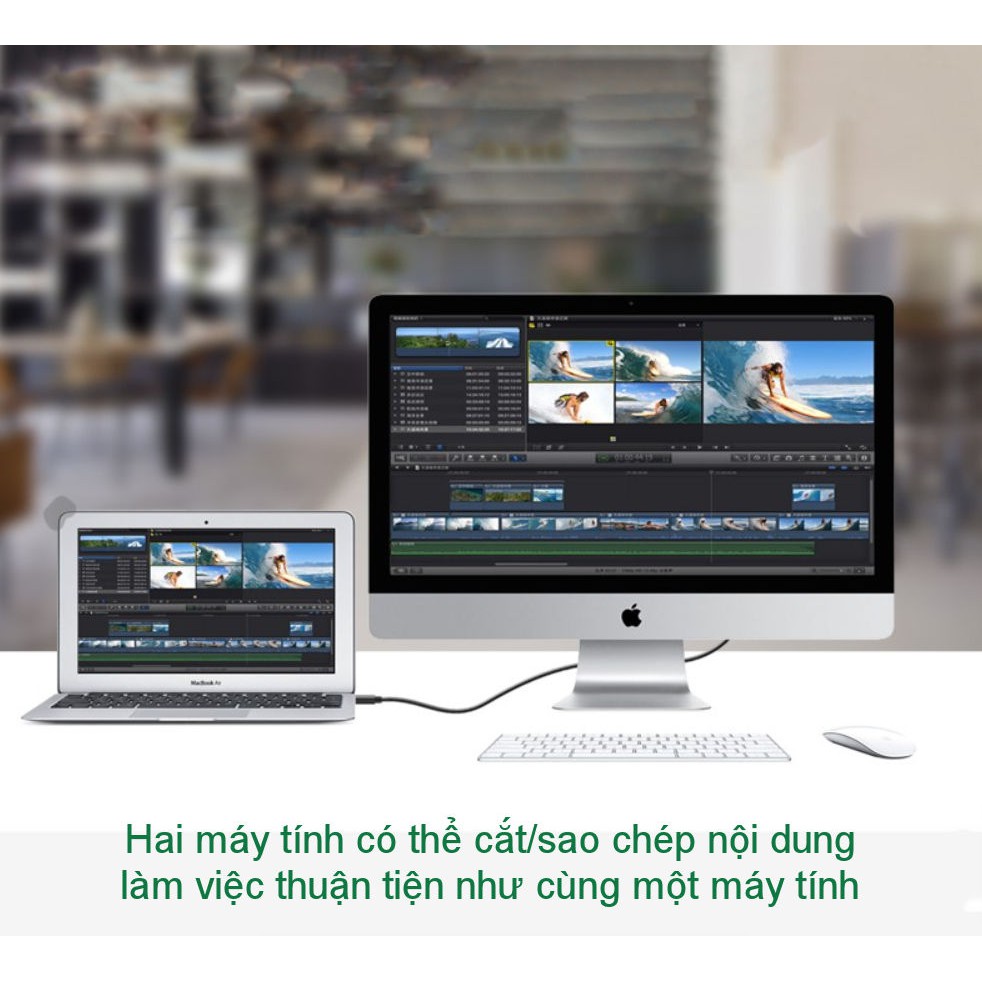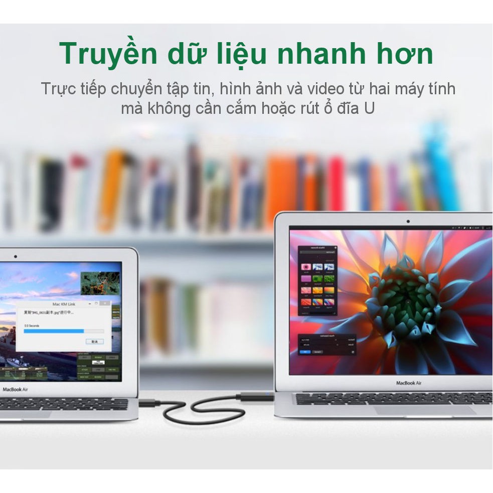 Cáp dữ liệu USB 3.0 sang USB type C tích hợp chipsetCho phép kết nối 2 máy tính cùng lúc để truyền dữ liệu hoặc thao tác chia màn hình đa tác vụ (sử dụng 2 màn hình với cùng một PC, bàn phím, chuột, ứng dụng trong nhiều trường hợp như: chơi trò chơi, thiết kế bản vẽ, theo dõi cổ phiếu trực tuyến...
