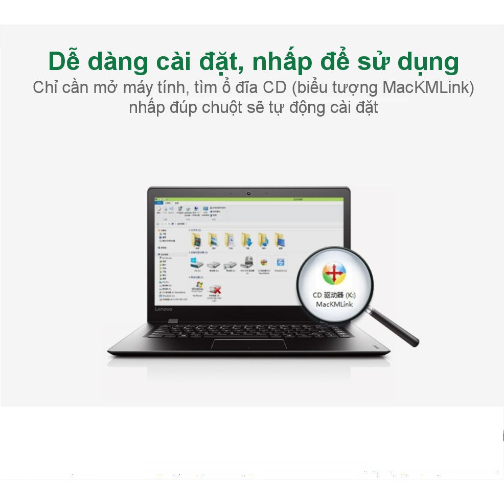 Cài đặt dễ dàng, chỉ cần mở máy tính, tìm ổ đĩa CD (biểu tượng MacKMLink) nhấp đúp chuột sẽ tự động cài đặt