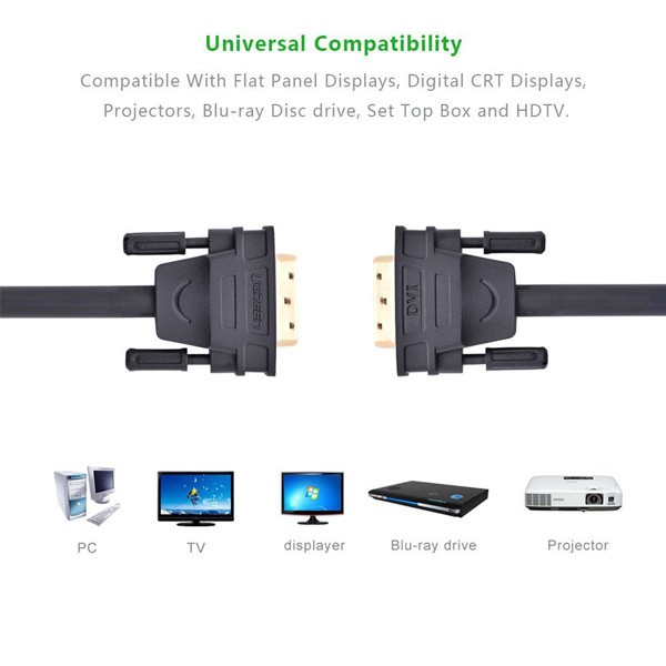 • Cáp DVI 24+1 Cao Cấp Ugreen là cáp chuyên dùng đế kết nối máy tính, đầu đĩa DVD hoặc máy chơi game với màn hình, máy chiếu, HDTV qua cổng kết nối DVI.