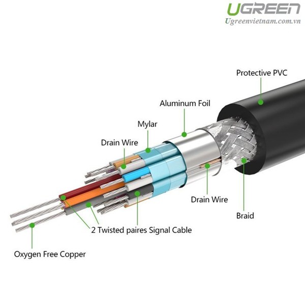 - Dây cáp DVI Ugreen do công ty Ugreenvietnam nhập khẩu và phân phối. Cáp DVI Ugreen được làm bằng vỏ PVC trơn rất mềm có thể dùng để đi trên trần thạch cao hoặc trong tường yên tâm không sợ bị hỏng.