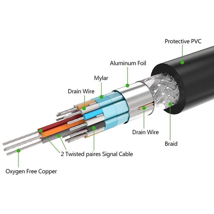 Ưu điểm của sợi cáp này chính là khả năng tự động khử từ khi kéo dây gần thiết bị phát sinh từ tính cao như môi trường điện khi IC được thiết kế bằng đồng ủ mềm với 2 lớp chống nhiễu hiệu quả.