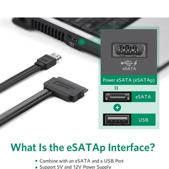 Máy tính & Laptop > Thiết Bị Lưu Trữ > USB & OTG || Cáp eSATAp combo sang Sata 22pin dài 0.5M UGREEN 10646Còn hàng