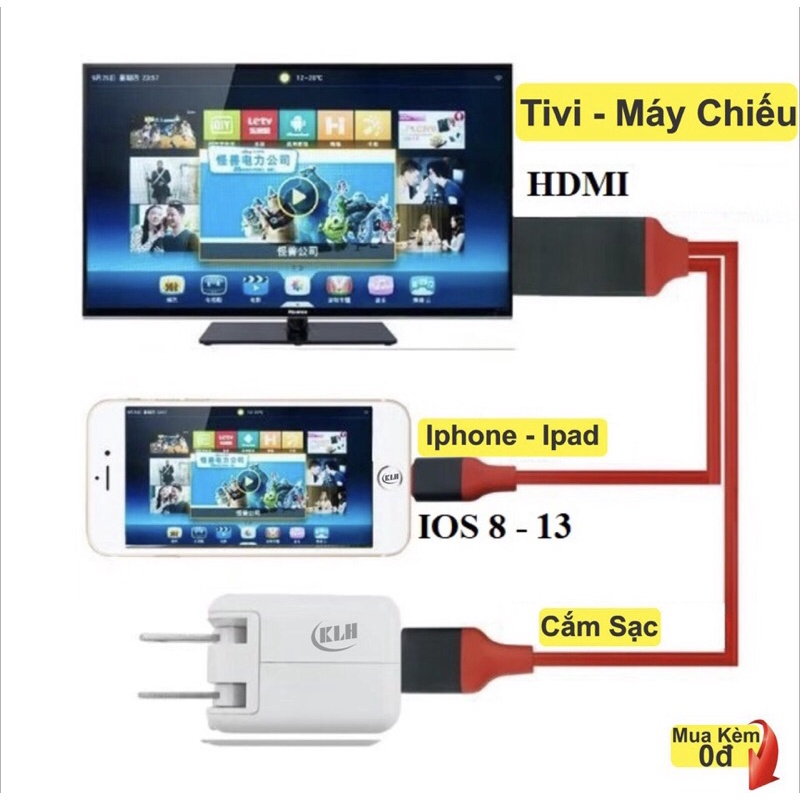 Cáp Hdmi Từ Đt Iphone Lên TiviThiết bị tương thích các đời máy ios từ ip5 trở lên ,ipad