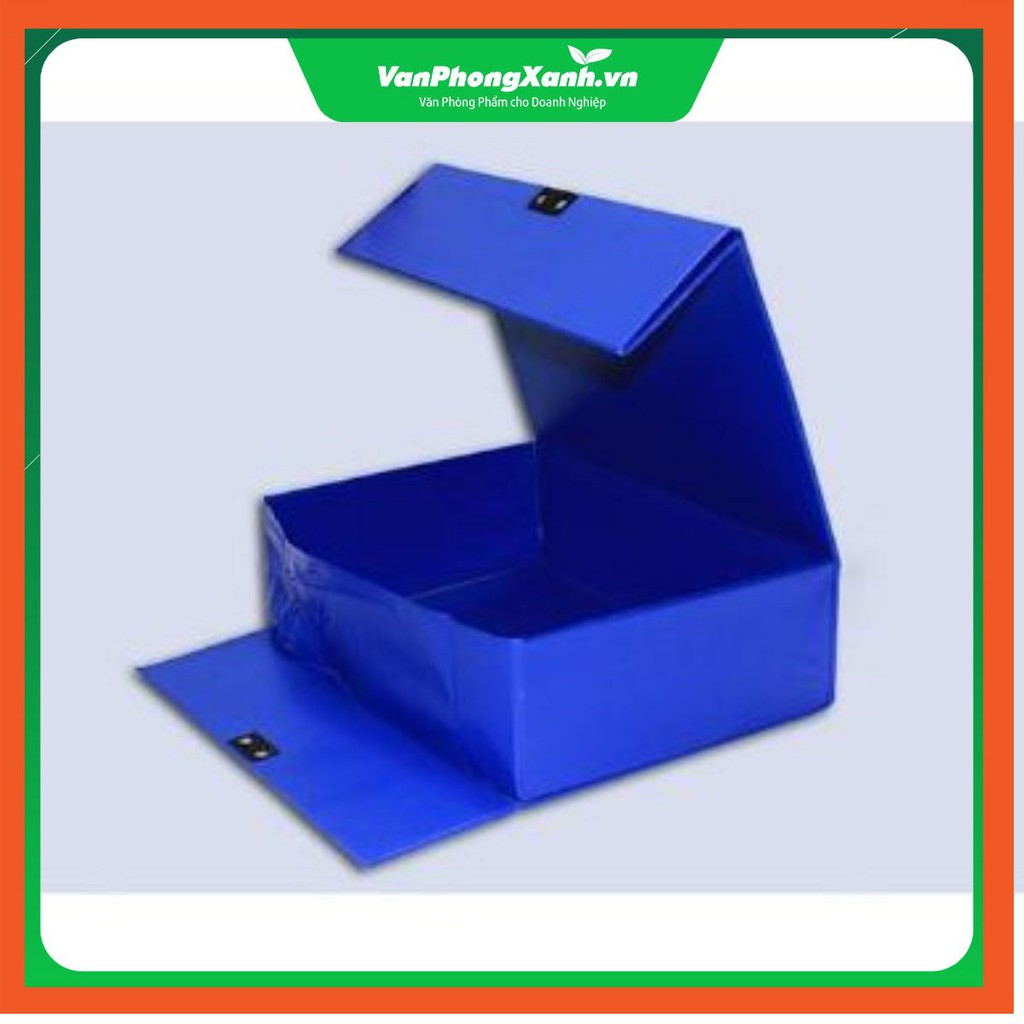Chất lượng: sản phẩm làm bằng bìa giấy cứng, được dán 1 lớp simily xanh dương bên ngoài với hình dáng như 1 chiếc hộp hình chữ nhậtĐộ dày gáy khoảng 30F, có miếng dán đóng mở chắc chắn giúp lưu trữ hồ sơ với số lượng lớn.