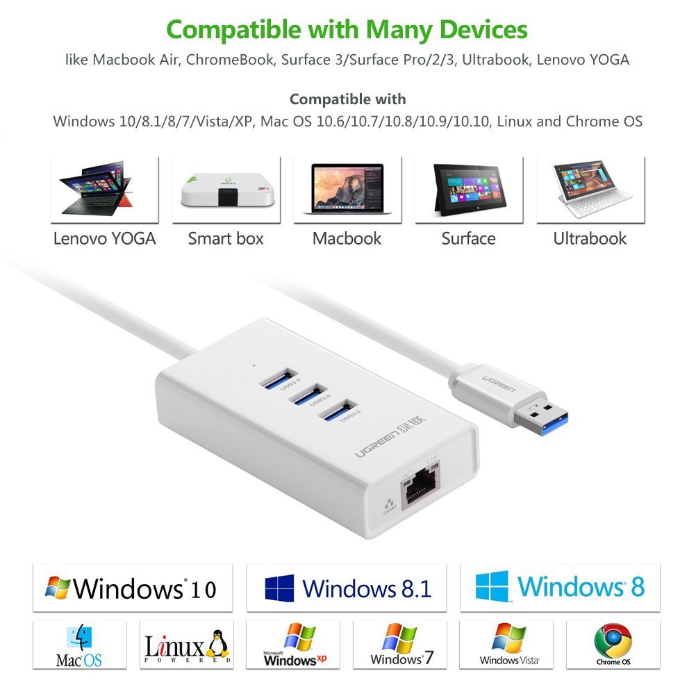 - Thông tin sản phẩm :+ Cáp HUB USB 3.0 + LAN 100Mbps chính hãng UGREEN 20262 là phụ kiện cao cấp giúp kết nối máy tính, laptop của bạn với cổng mạng lan rj45 với tốc độ cao lên đến 10/100Mbps thông qua cổng usb, giải pháp hoản hảo dành cho các máy tính không tích hợp cổng lan hoặc thay thế khi bị hỏng.