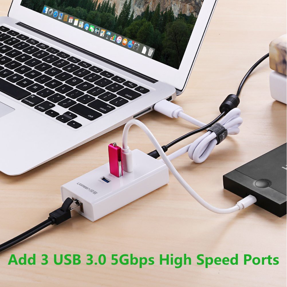Máy tính & Laptop > Phụ Kiện Máy Tính > Bộ chia cổng USB & Đọc thẻ nhớ || Cáp HUB USB 3.0 + LAN 100Mbps chính hãng UGREEN 20262Còn hàng