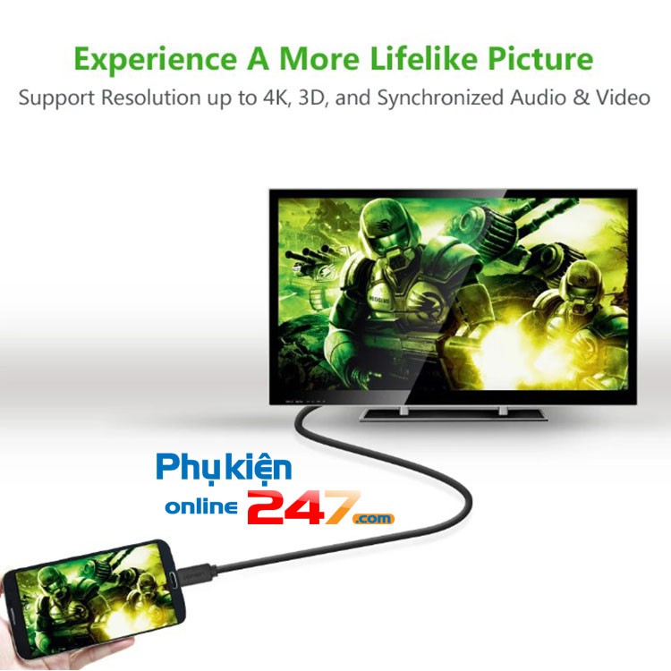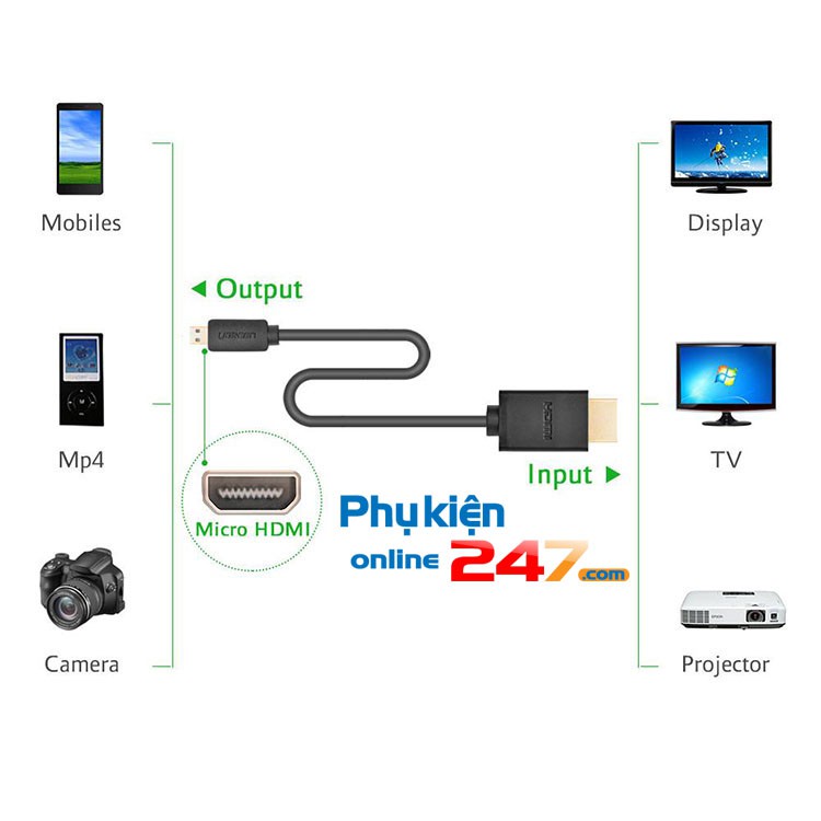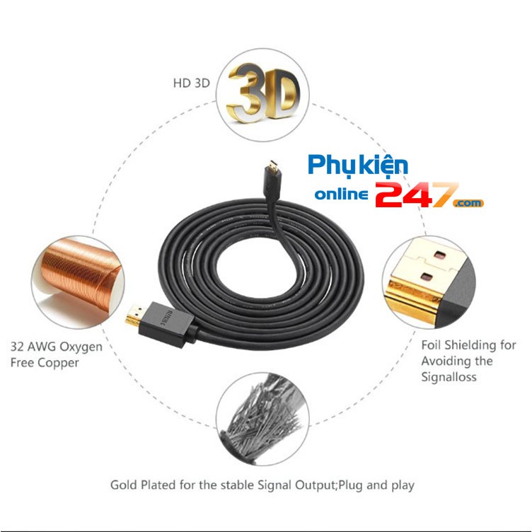 - Chuyển đổi tin hiệu qua lại giữa micro HDMI và HDMI đầu cáp mạ Vàng 24k