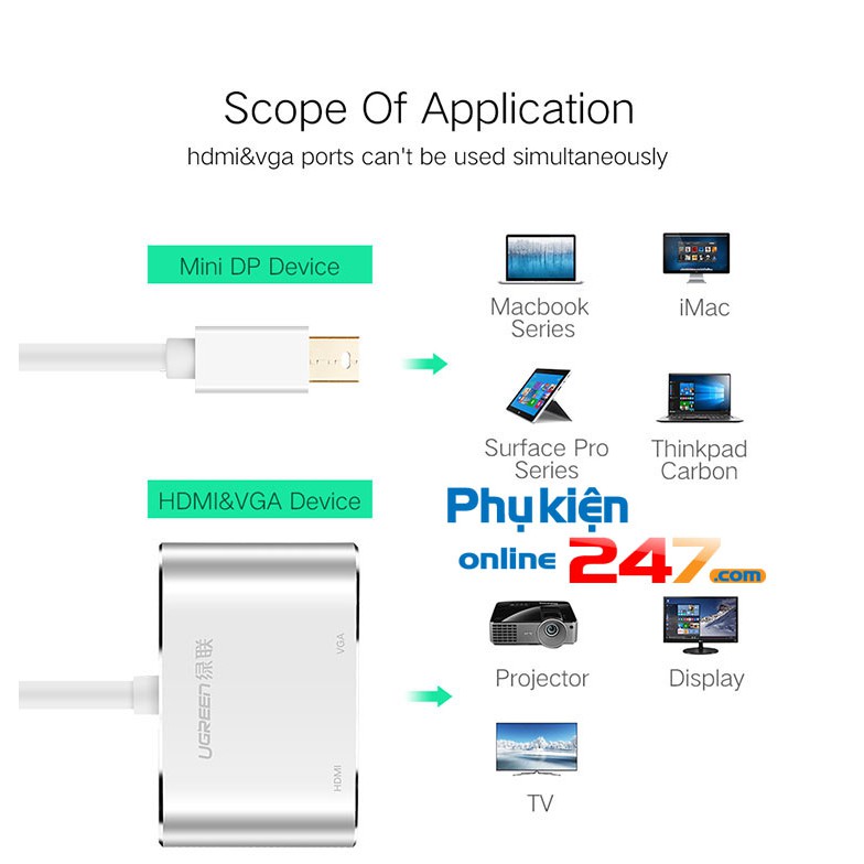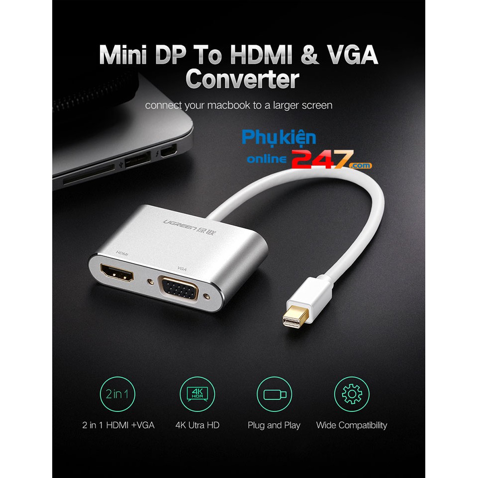 💥 Cáp chuyển đổi thiết kế nhỏ gọn, sản phẩm 2 chức năng trong một. Sử dụng 2 chipset chuyển đổi từ chuẩn Mini Displayport sang VGA và HDMI. Tuy nhiên, sản phẩm không chuyển được đồng thời ra HDMI và VGA.