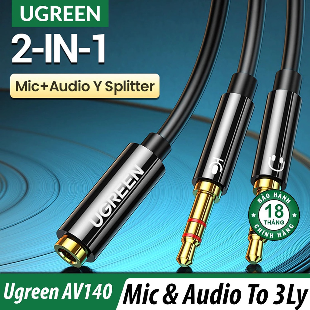 Giới thiệu Cáp kết nối tai nghe có Mic với Laptop có 2 cổng Headphone và Mic Ugreen AV140 Chính Hãng
