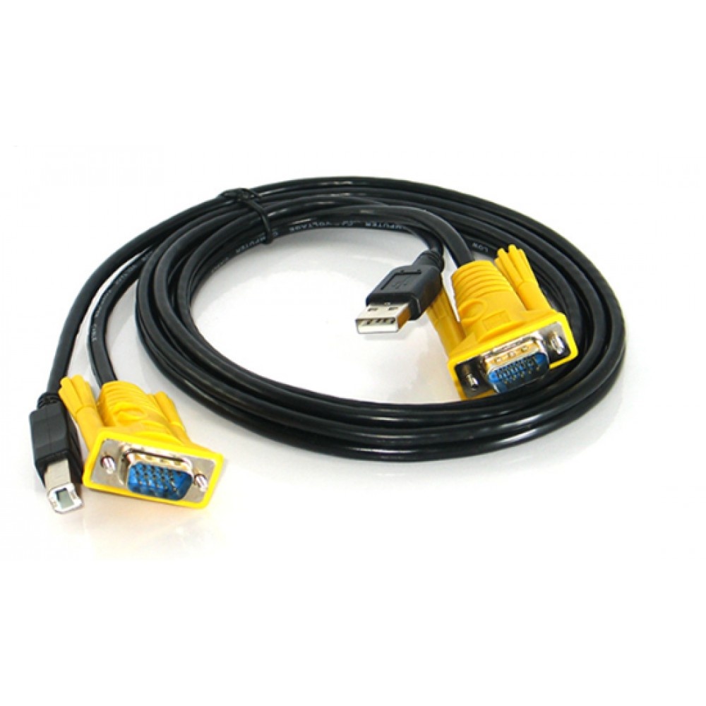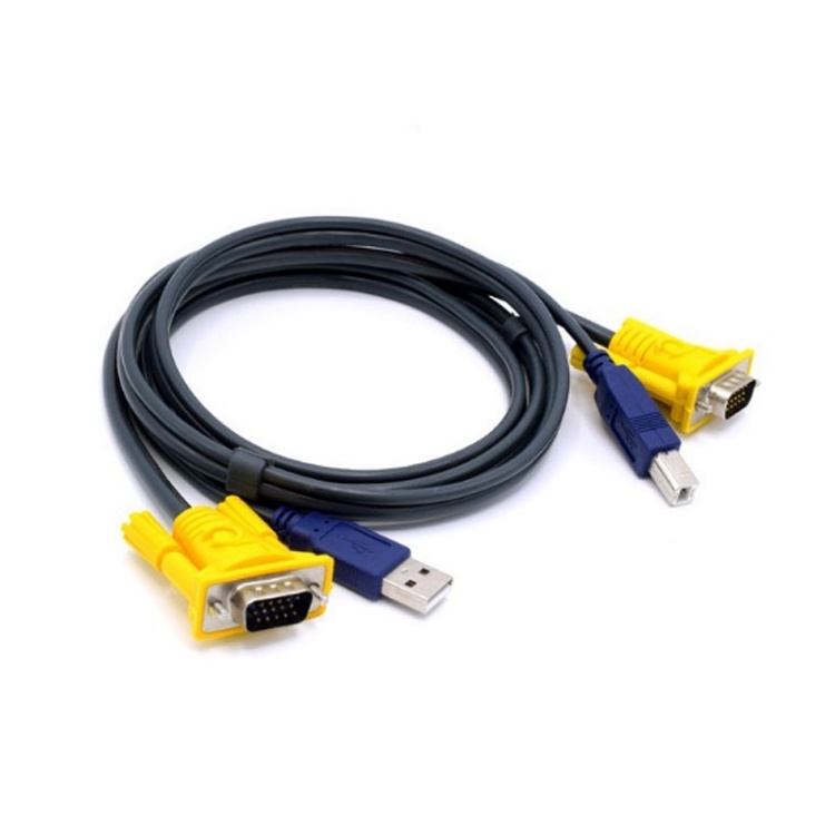 Cáp KVM USB 1,5m dùng để kết nối giữa bộ KVM với PC- Cáp sử dụng cho các bộ chuyển mạch KVM. Nhánh VGA cắm vào máy tính dạng chữ Y (cáp USB đi kèm). Đầu VGA phía bộ KVM đã bao gồm tín hiệu VGA, Chuột và bàn phím