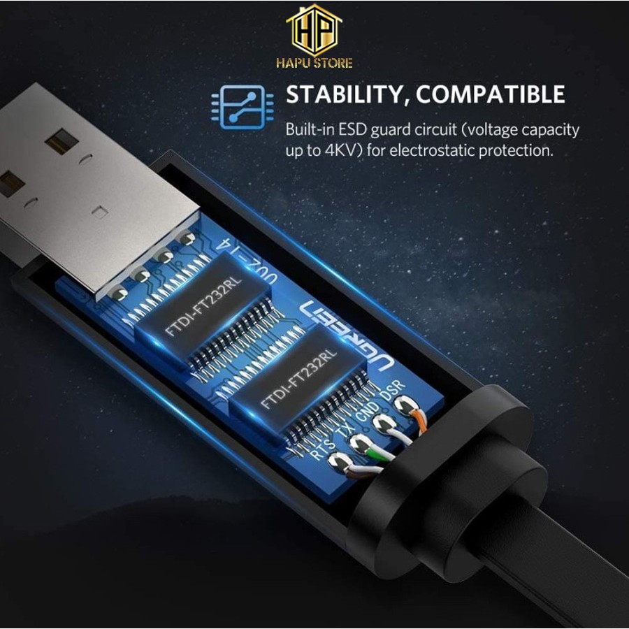 Giới thiệu Cáp lập trình Console USB-C to RJ45 FTDI Ugreen 80186 dài 1.5M chính hãng - Hapustore