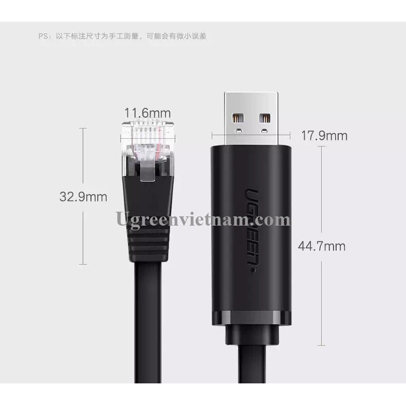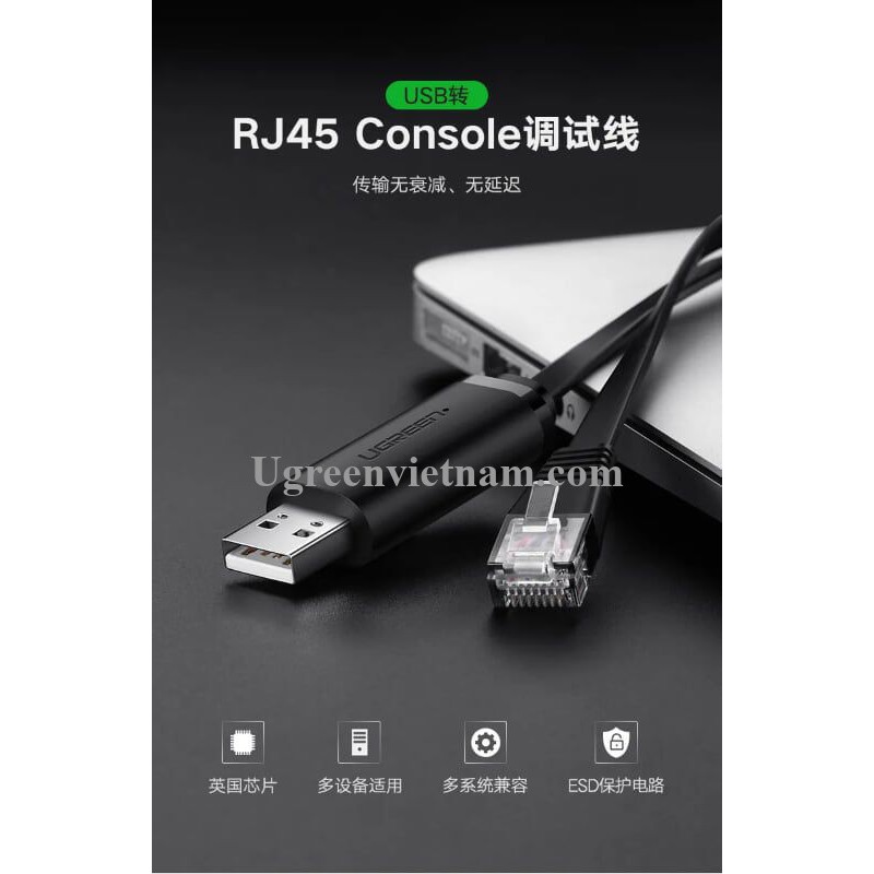 Ugreen 50773 1.5m usb to rj45 console cable black cm2041. USB to RJ45 Console Cable can connects your computer or laptop's USB port to your modern router firewall switch or other device with a console port