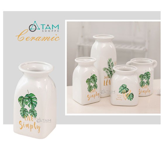Giới thiệu [CAO CẤP] Lọ hoa đẹp gốm trắng họa tiết nhiệt đới số 51