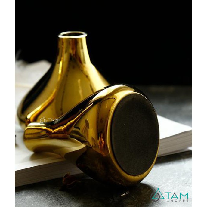 [CAO CẤP] Lọ hoa gốm cao cấp ánh kim vàng nhỏ CE-LHOA-52