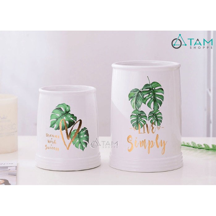 Nhà cửa & Đời sống > Trang trí nhà cửa > Bình trang trí || [CAO CẤP] Lọ hoa gốm trắng họa tiết nhiệt đới số 52Còn hàng
