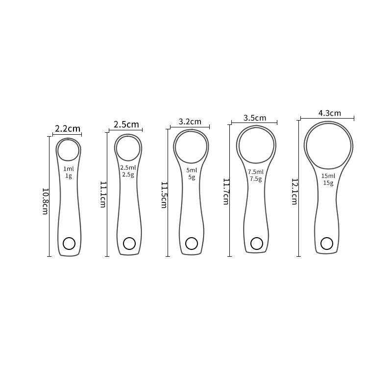 Bộ 05 muỗng đo lường bằng nhựa cao cấp thuận tiện cho bạn đo lường chính xác nguyên liệu để chế biến thức ăn.