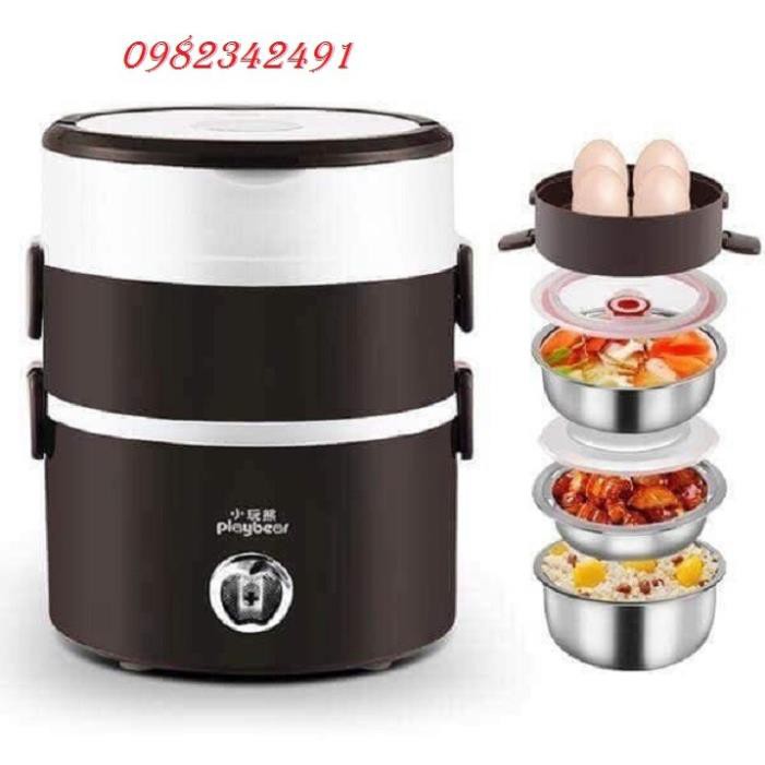 - Hộp cơm cắm điện inox 3 ngăn cao cấp PlayBear với vỏ ngoài bằng nhựa và ruột bằng inox cho thức ăn được bảo quản một cách hiệu quả nhất, giúp bữa cơm của bạn nóng hổi, ngon miệng hơn.