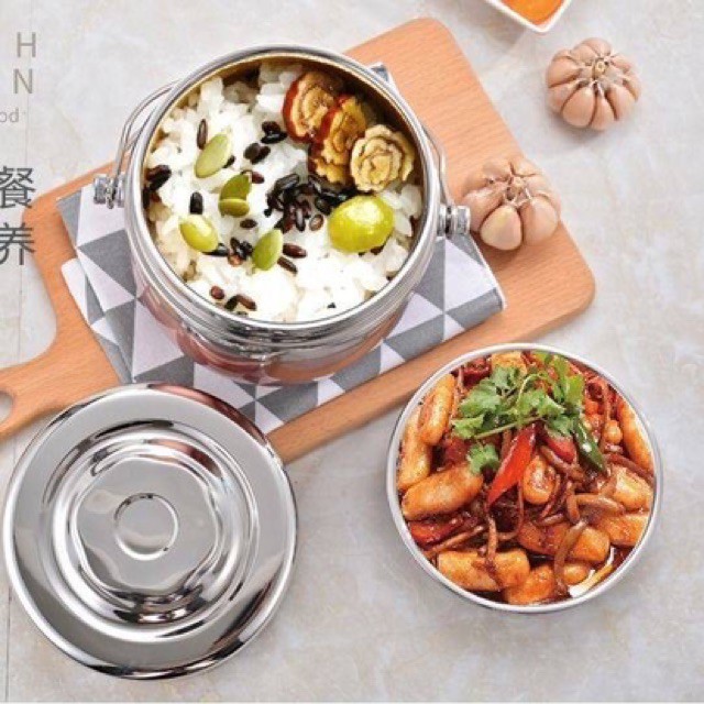- Chất liệu inox 2 lớp giúp cách nhiệt & giữ nhiệt tốt. Cặp lồng cơm giữ nhiệt là lựa chọn hoàn hảo cho bữa trưa công sở của chị em phụ nữ.