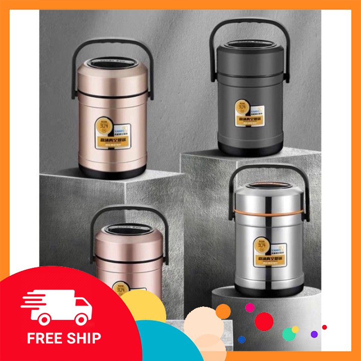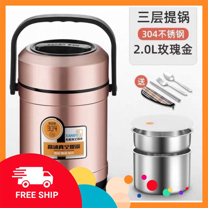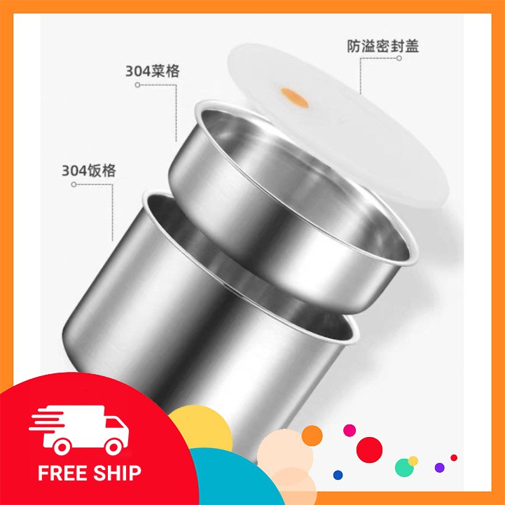 Tên sản phẩm: Cặp lồng giữ nhiệt Inox 304 3 ngăn 2 Lớp Chống Tràn Đổ Giữ Nhiệt Trên 6H