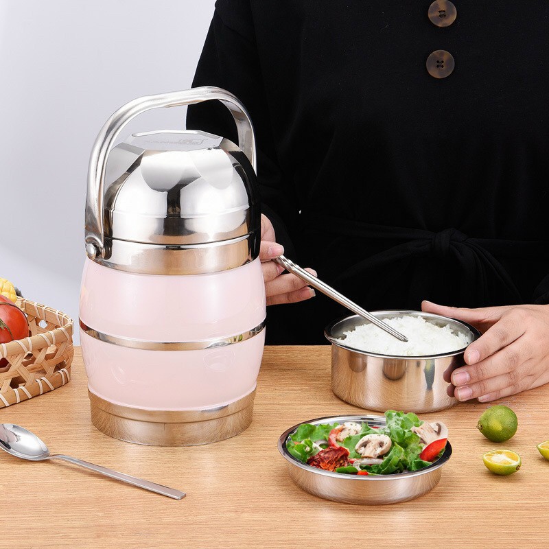 Gồm 1 ngăn đựng cơm, 1 ngăn đựng thức ăn và 1 ngăn đựng canh nóng- Chất liệu inox 304 cao cấp 2 lớp giúp cách nhiệt & giữ nhiệt tốt. Cặp lồng cơm giữ nhiệt là lựa chọn hoàn hảo cho bữa trưa công sở của chị em phụ nữ.