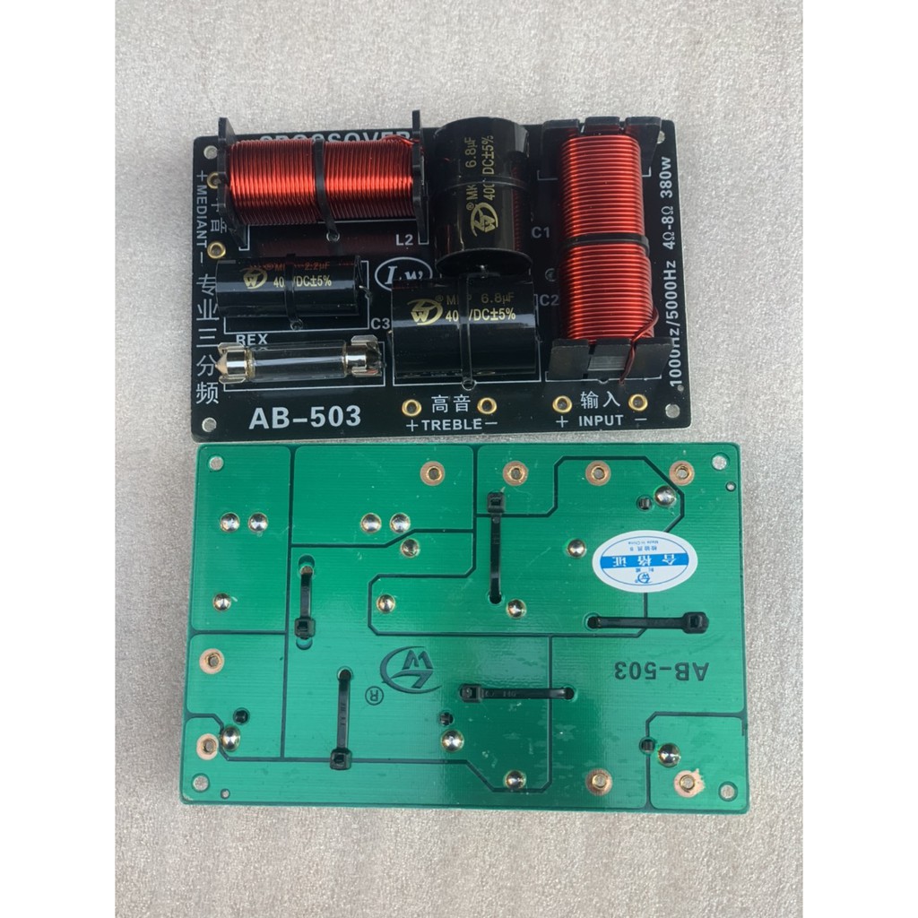 Mạch phân tần AB-503 là mạch nhập khẩu chất lượng. Sử dụng các linh kiện chất lượng, nên giảm tiếng tiếng hú rít treble.