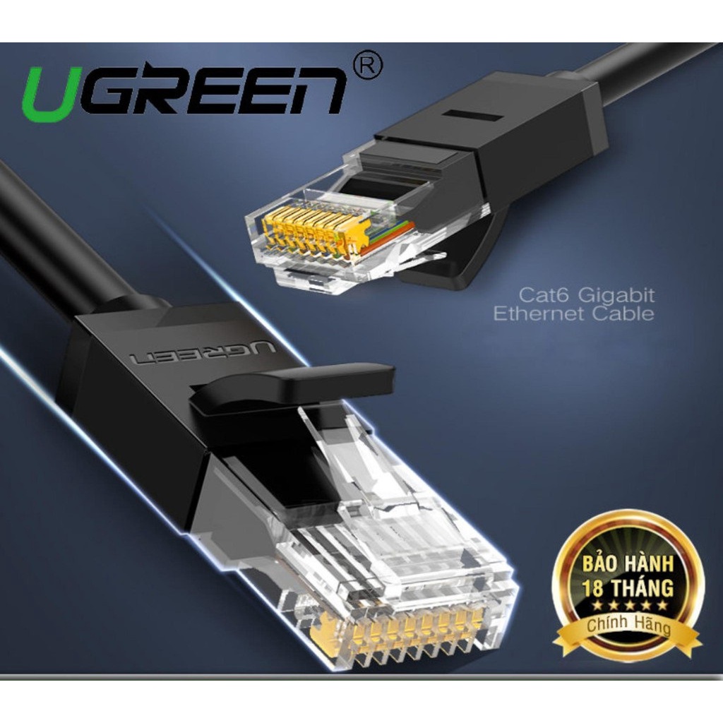 Dây mạng cat6 UTP dài 8m Ugreen 20163 màu đen chính hãng cáp mạng cung cấp kết nối cho tất cả mọi thiết bị như máy tính, máy in, máy chủ, bộ định tuyến mạng, thiết bị mạng lưu trữ và các thiết bị tiêu chuẩn văn phòng…
