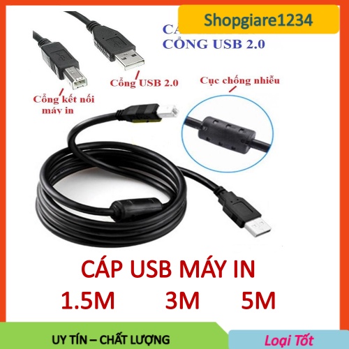 Cáp máy in cổng USB dài 1.5M/ 3M/ 5M Chống Nhiễu - Màu đen GIÁ RẺ