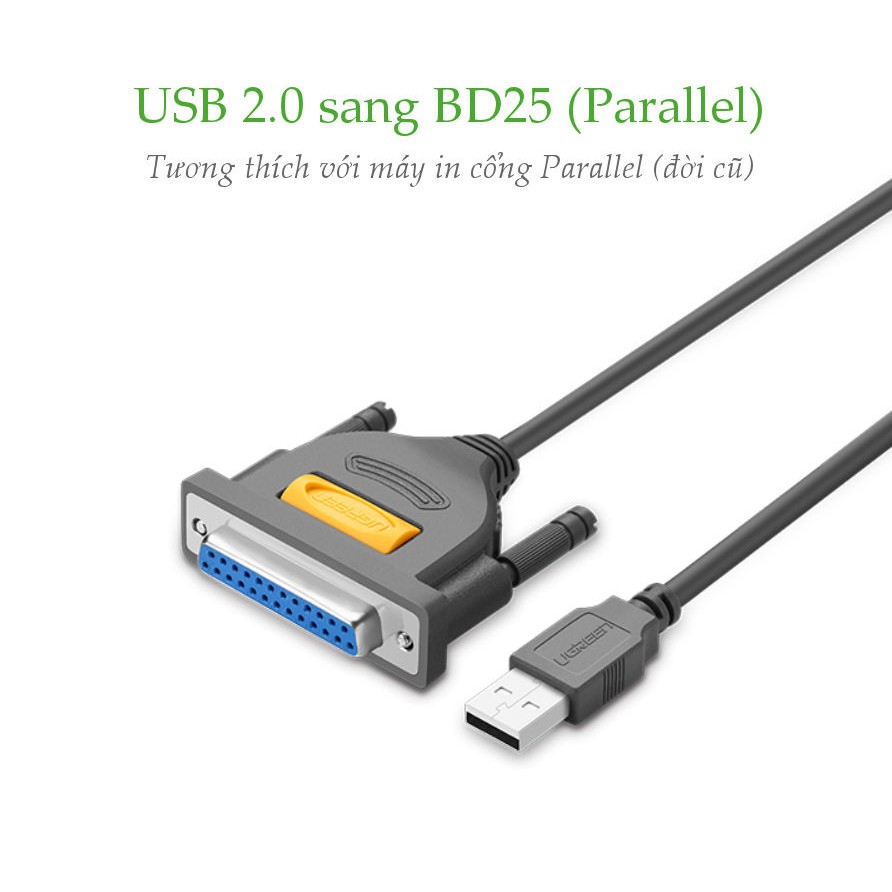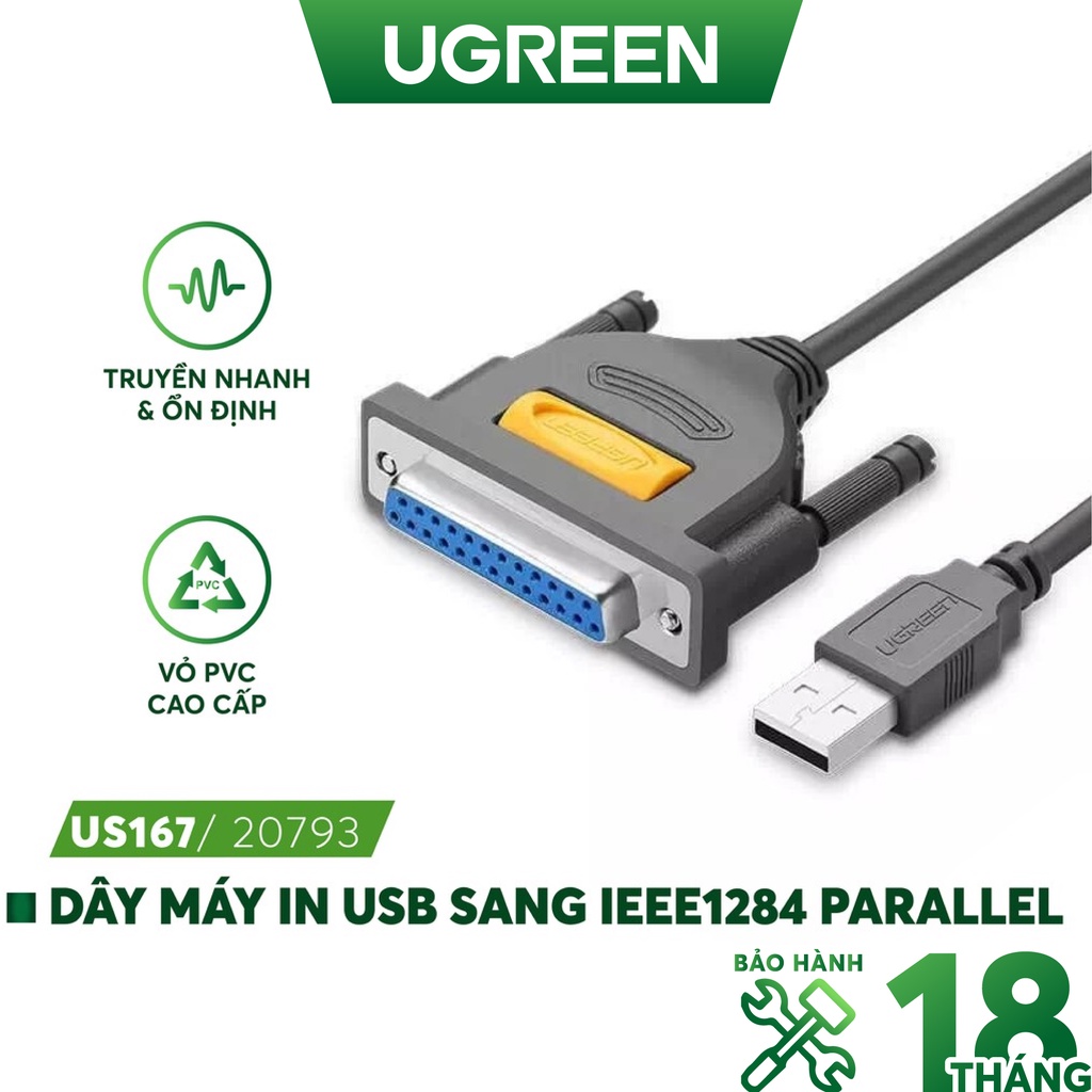 Máy tính & Laptop > Thiết Bị Lưu Trữ > USB & OTG || Cáp máy in UGREEN US167 20793 dài 1m USB 2.0 sang cổng BD25 ParallelCòn hàng