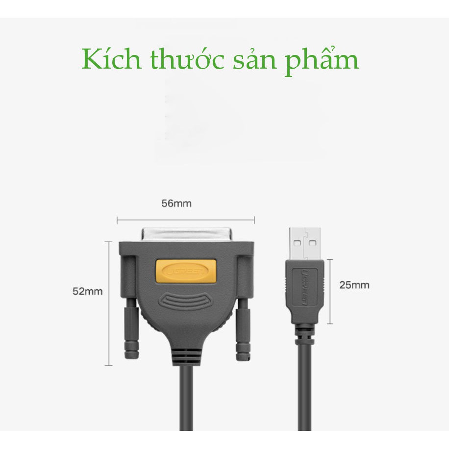 Cáp máy in UGREEN US167 20793 dài 1m USB 2.0 sang cổng BD25 Parallel