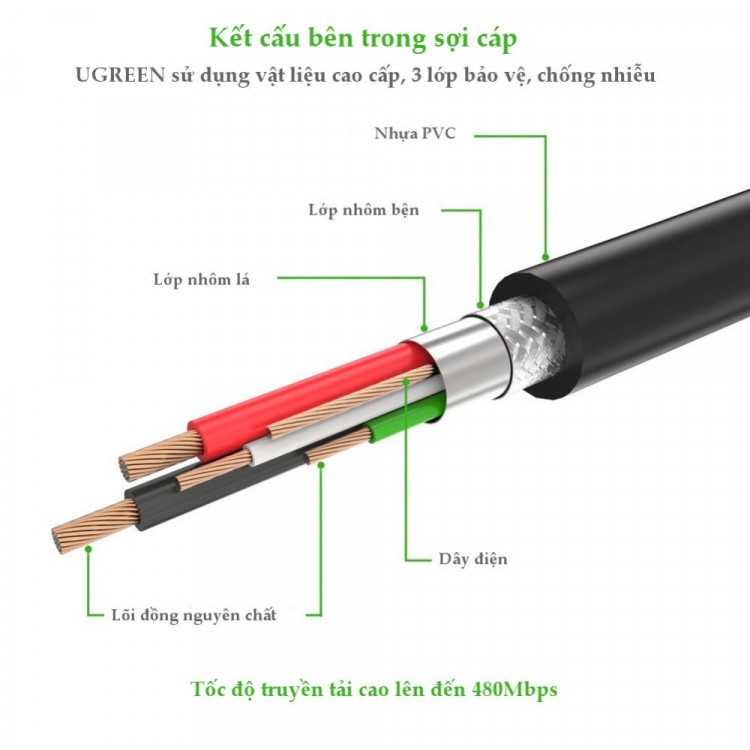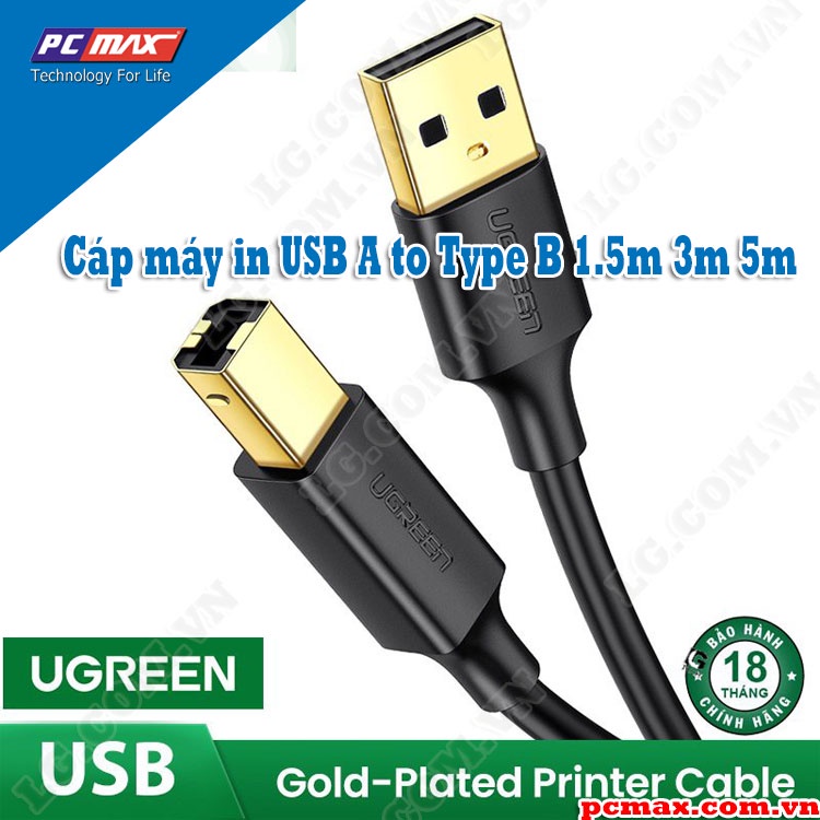 Cáp máy in usb 2.0 type A to type B dài 1,5M 3M 5M cao cấp Ugreen - Hàng chính hãngCho phép bạn kết nối thiết bị Máy tính, laptop đến Máy in phun, Máy in dây, Máy photocopy, Máy quét, Máy tính bàn All-In-O