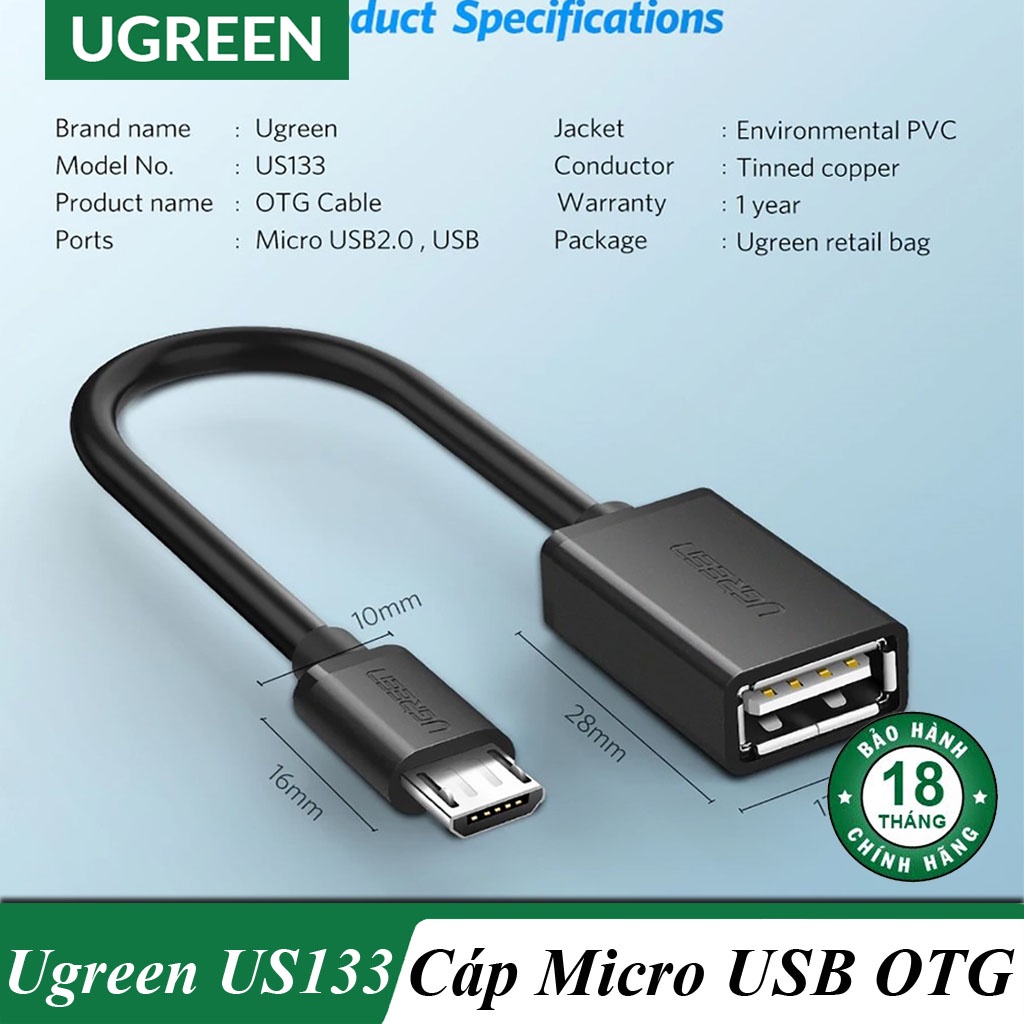 THÔNG SỐ KỸ THUẬT: Cáp Micro USB 2.0 OTG Ugreen US133
