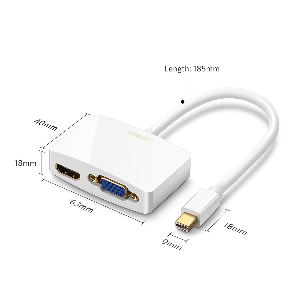 Cáp mini Displayport to HDMI và VGA chính hãng Ugreen 10427