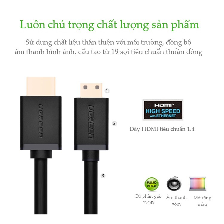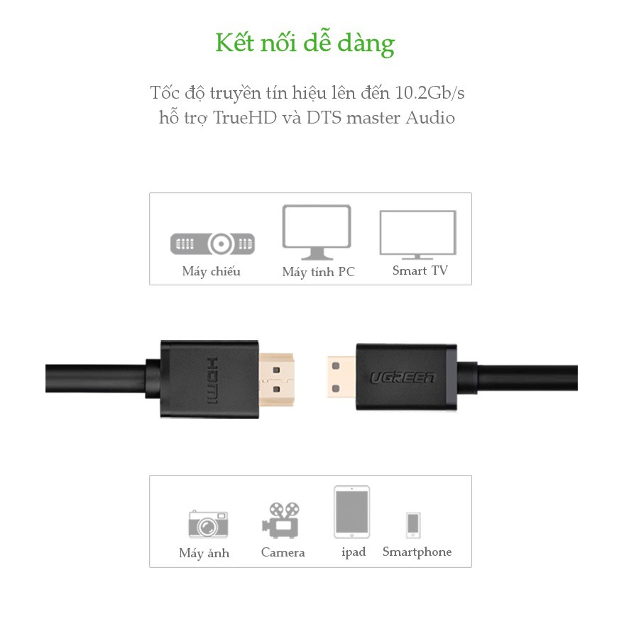 Cáp Mini HDMI To HDMI Ugreen dài 1m 3m - Hàng Chính Hãng