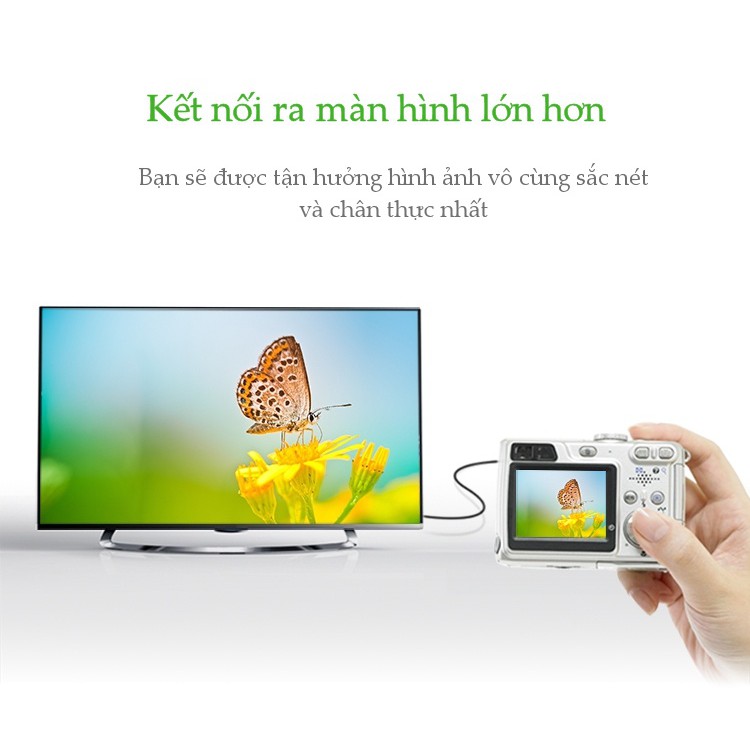 Cáp có thể được áp dụng để kết nối máy ảnh, máy nghe nhạc MP3, máy quay, và nhiều hơn nữa với HDTV của bạn. Sau đó, bạn có thể trải nghiệm âm thanh chất lượng cao và video từ các rạp hát gia đình của bạn.