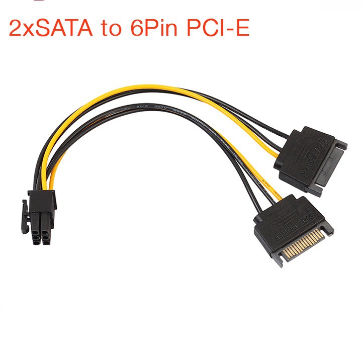 Cáp nguồn 2 SATA sang 6pin cho card đồ họa VGA- Cáp nguồn 6pin cấp nguồn cho card đồ họa (card màn hình, graphics card, VGA)
