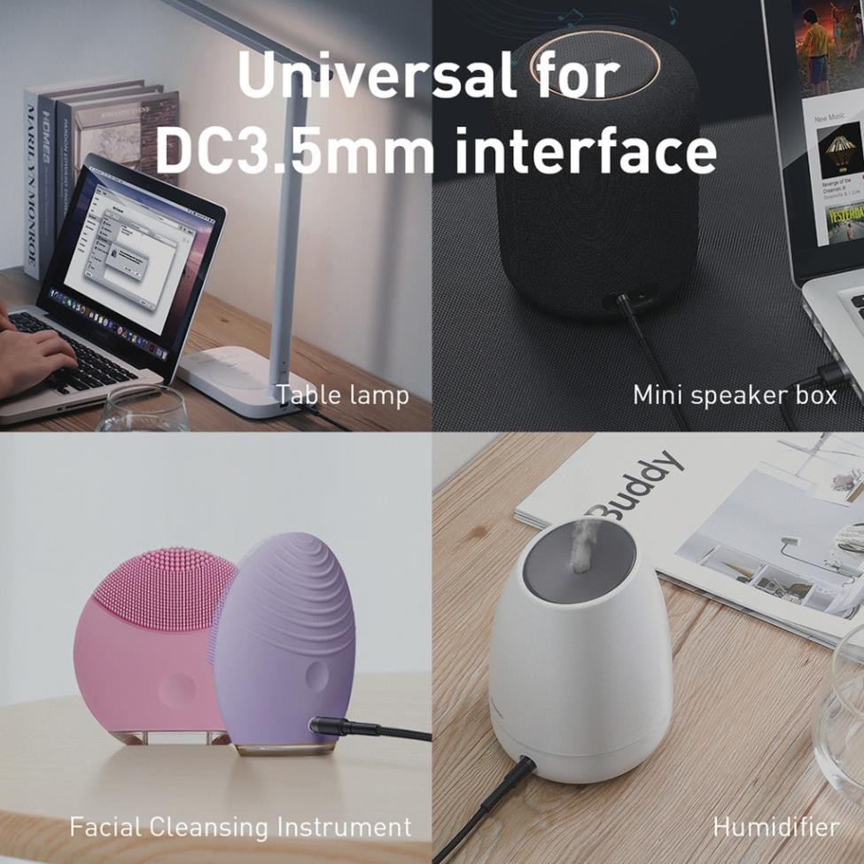 🏎 Cáp nguồn Baseus Cafule Series dùng cấp nguồn qua cổng DC 3.5mm cho các thiết bị số, thiết bị gia dụng như: quạt, máy phun sương, máy hút bụi mini, đèn bàn,loa mini,... và các thiết bị điện tử khác dùng cổng nguồn DC 3.5mm.
