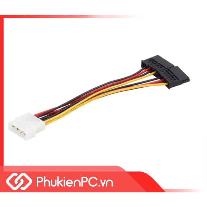 Cáp nguồn Molex IDE 4Pin sang 2 SATACáp chia nguồn SATA 1 ra 2 cho ổ cứng SSD, HDD 2.5, 3.5, DVD ROM SATA. Sử dụng nguồn vào từ chân Molex IDE 4Pin (ATA)