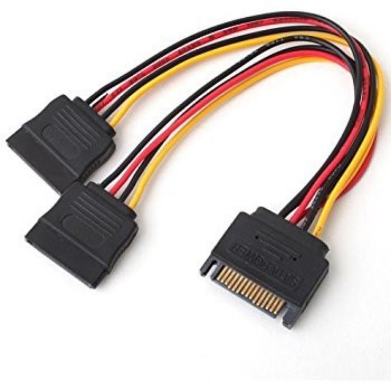 - Cáp chia nguồn SATA 1 ra 2. Chia từ 1 cổng nguồn SATA dương sang 2 cổng nguồn SATA âm