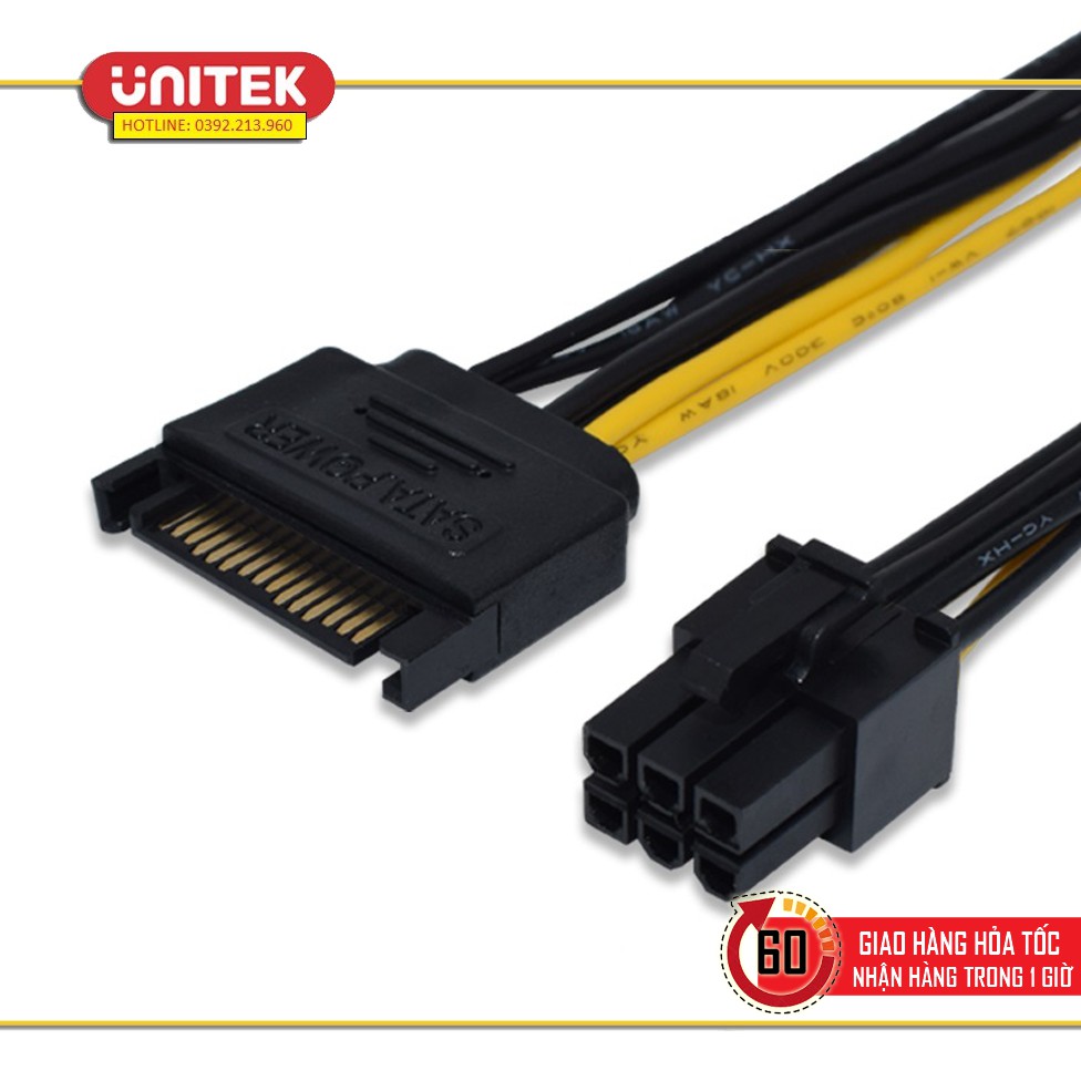 Cáp SATA sang 6Pin chuẩn 18AWG, lõi đồng nguyên chất. Cấp điện an toàn cho Card VGA