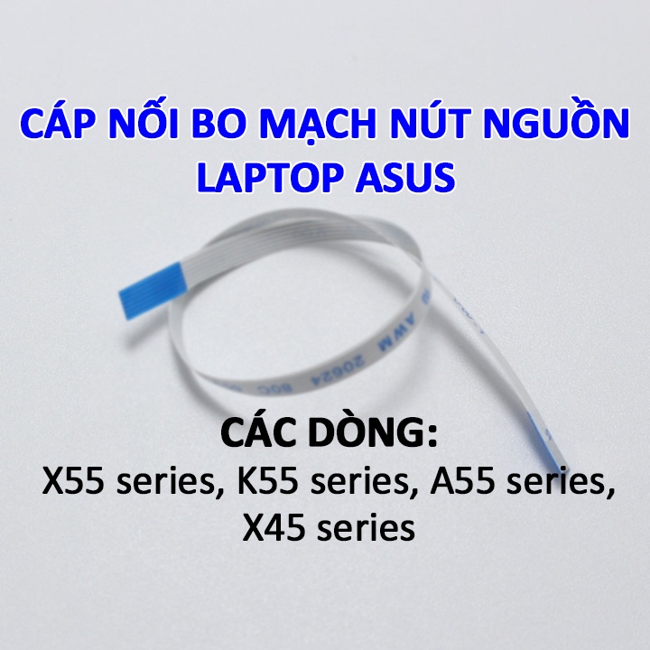 Cáp nối bo mạch nút mở nguồn cho các dòng laptop Asus X55 series, K55 series, A55 series, X45 series như: X55A, X55C, X55U, X55V / X55VD, X55S (X55SV, X55SR), K55A, K55D (K55DR, K55DE), K55N, K55V (K55VD, K55VJ, K55VM), A55A, A55D (A55DE, A55DR), A55N, A55V (A55VD, A55VJ, A55VS), X45A, X45C, X45U, X45V / X45VD thay cáp zin có các style AWM 20706, AWM 20798, AWM 20861, AWM 2896, AWM 20696 của các hãng: Xinya, CviLux, HAMBURG-SH-HF, High-Tek, JI-HAW, YOUNGSHIN-T, ... có các số hiệu: E476580, E208903-3, E235863, E353411, E118077, E221612, E353750,...Giá cho 1 sợi. Hàng mới 100%